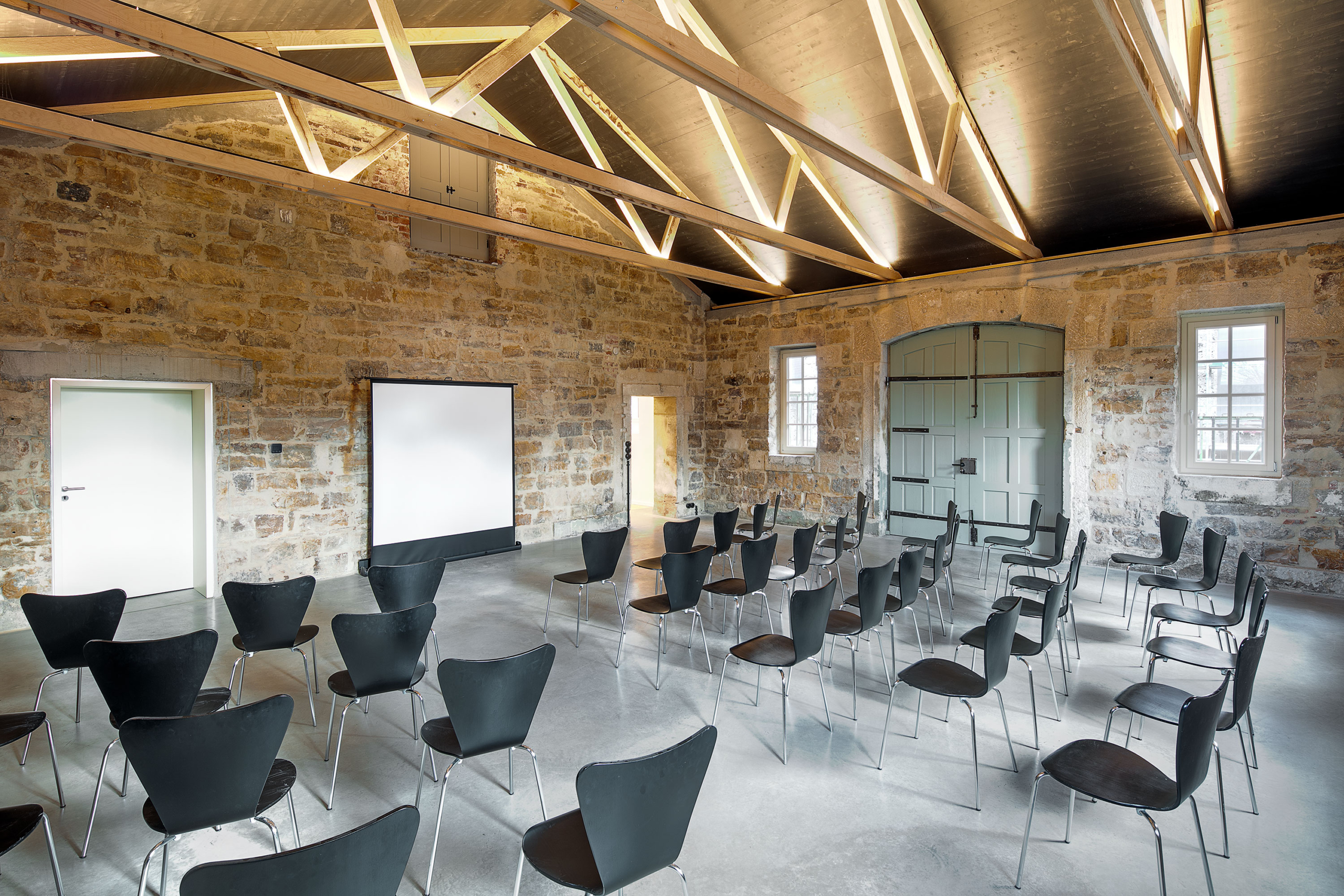 Der Eventraum verbindet industriellen Charme mit modernem Zeitgeist. Die historischen Steinwände schaffen eine besondere Atmosphäre, unsere technische Ausstattung optimale Voraussetzungen für vielseitige Formate bietet. Ideal geeignet für Vorträge, Empfänge, Präsentationen, Team-Events, Workshops oder kleine Konzerte.